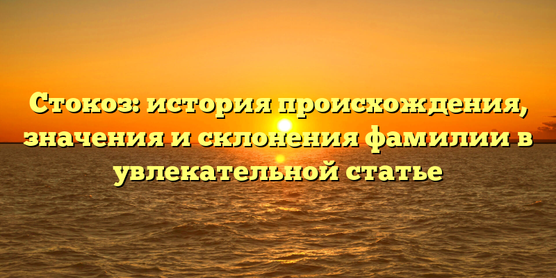 Фамилия Стокоз имеет достаточно интересную историю происхождения, которая датируется несколькими веками назад. В данной статье мы рассмотрим происхождение и значение фамилии, а также ее склонение.