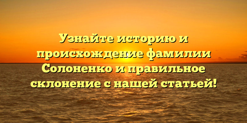Будьте в курсе! Мы подробно рассмотрим историю и происхождение фамилии Солоненко, а также правильное склонение в разных падежах. Если вы являетесь представителем этой фамилии или просто интересуетесь этой темой, то наша статья точно будет для вас полезной и интересной.