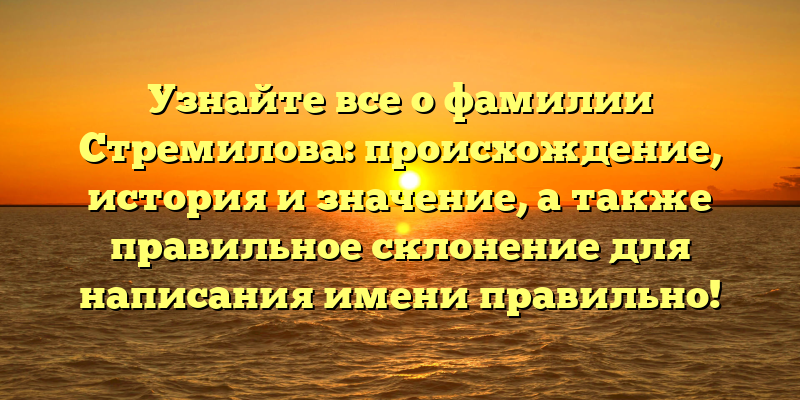 - Раскрываем тайны фамилии Стремилова: происхождение, история и значение, а также советы по правильному склонению имени!