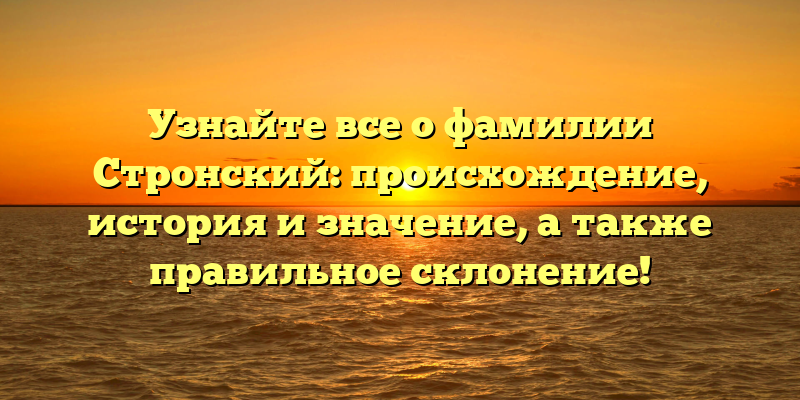 Откройте тайны фамилии Стронский: происхождение, история и значение, а также советы по правильному склонению!