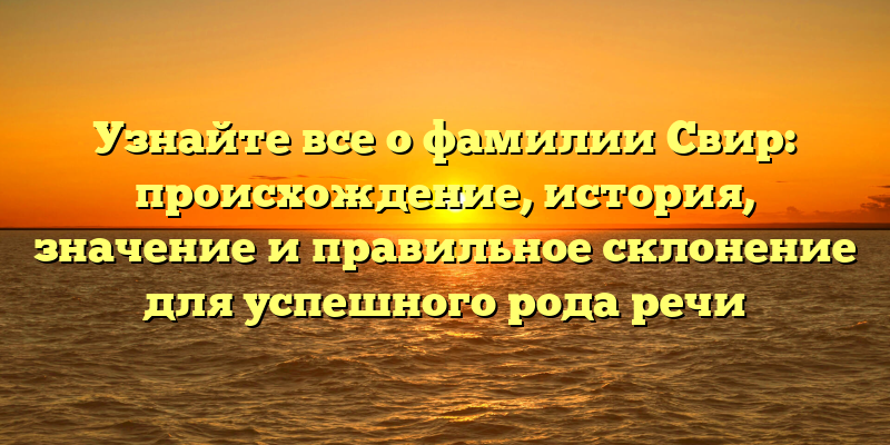 - Раскрываем тайны фамилии Свир: происхождение, история, значение и грамотное склонение для эффективной коммуникации