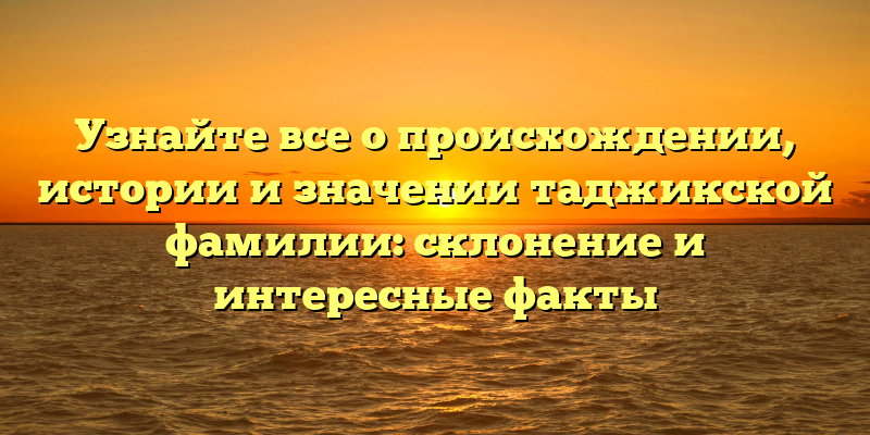 В этой статье мы расскажем об истории происхождения некоторых из самых распространенных таджикских фамилий и об интересных фактах, которые помогут вам узнать больше о культуре и традициях Таджикистана.