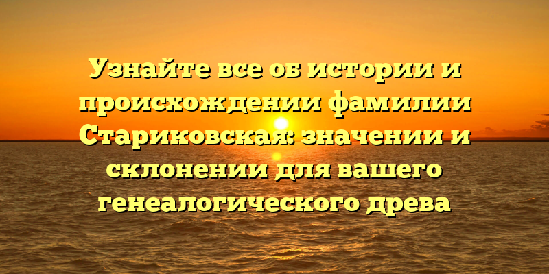 В этой статье вы узнаете все об истории и происхождении фамилии Стариковская. Мы расскажем, как и откуда появилась эта фамилия, какое значение она имеет, и как правильно склонять ее для вашего генеалогического древа.