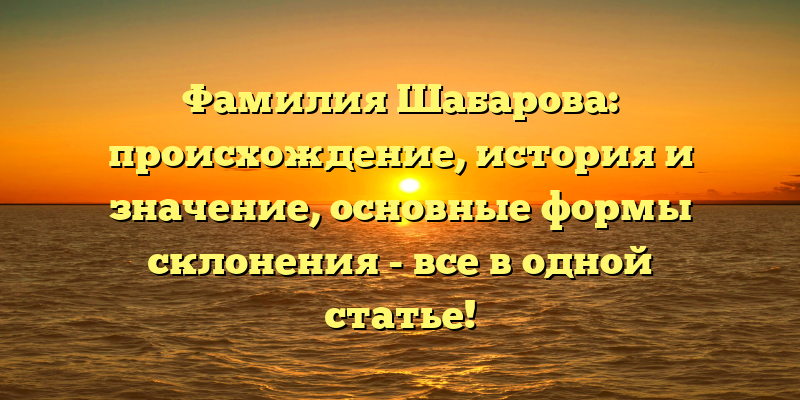 - Фамилия Шабарова: история, происхождение и значение, а также все формы склонения в одной статье!