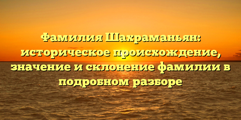 - Фамилия Шахраманьян: происхождение, значение и склонение в историческом контексте