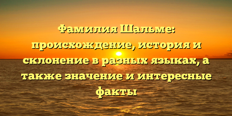 - Фамилия Шальме: история происхождения, склонение и интересные факты на разных языках