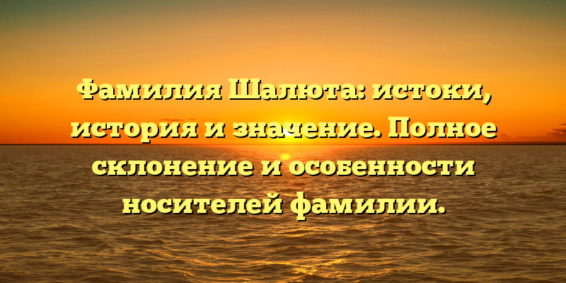 - Фамилия Шалюта: происхождение, значение и интересные факты. Полное склонение и уникальные особенности носителей этой фамилии.
