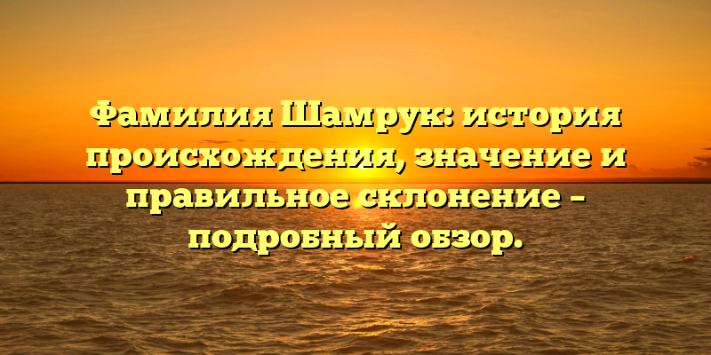 - Фамилия Шамрук: история, значение и правильное склонение – все, что вы хотели знать об этом уникальном имени