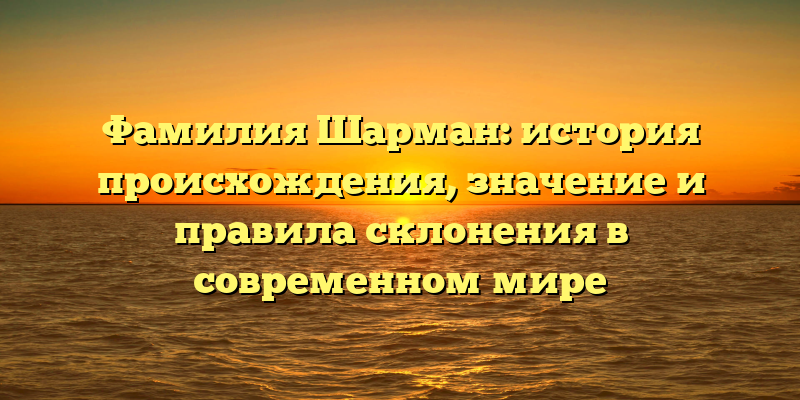 В данной статье мы подробно рассмотрим историю происхождения фамилии Шарман, ее значение и правила склонения в современном мире. Мы разберем основные теории, связанные с происхождением этой фамилии и попробуем прояснить тайны, связанные с ее происхождением.
