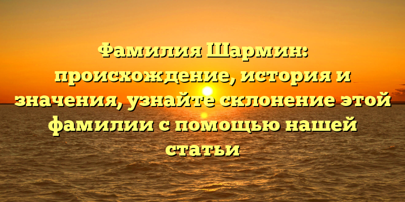 - Фамилия Шармин: происхождение, история и значения. Узнайте правильное склонение этой фамилии с помощью нашей подробной статьи