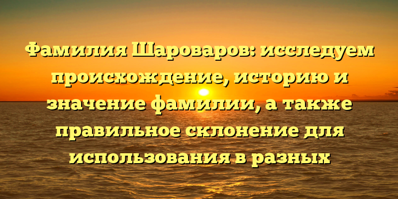 Раскрываем тайны фамилии Шароваров: происхождение, история и формы склонения для корректного использования.