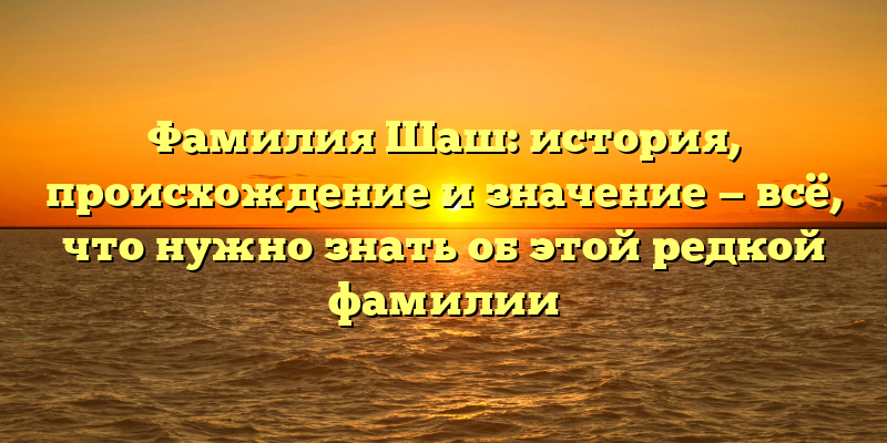 Как много таится в фамилиях: и история родов, и их происхождение, и значение этих имен. Можно узнать о многом, изучив свою собственную фамилию. Именно о такой фамилии пойдёт речь в данной статье — Шаш.
