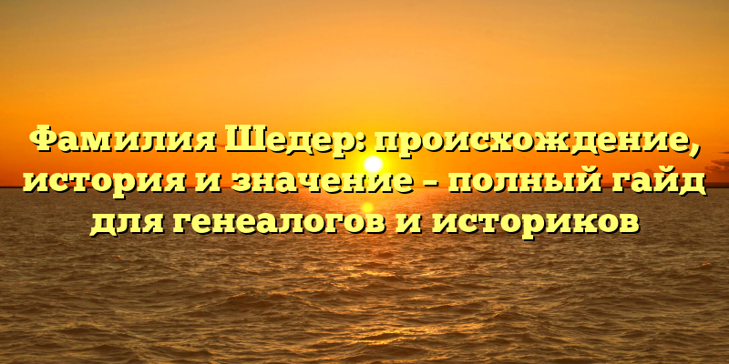 - Истоки и родословная фамилии Шедер: всё, что нужно знать генеалогам и историкам