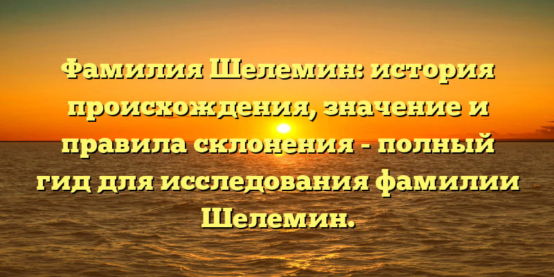 Фамилия Шелемин: история, значение и разбор правил склонения — все, что нужно знать для исследования родословной.
