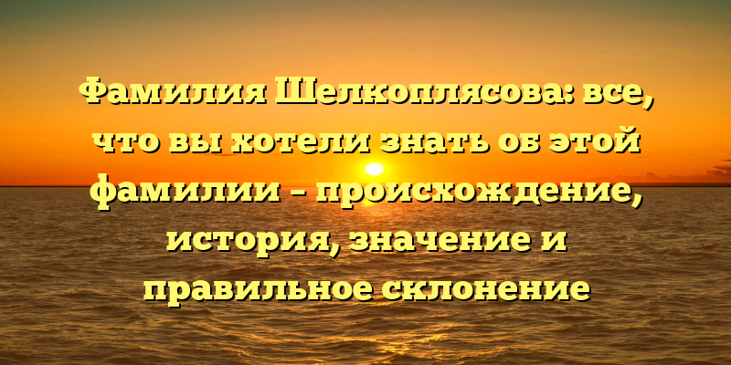 История фамилии Шелкоплясова: происхождение, значение и правильное склонение в одной статье для любознательных