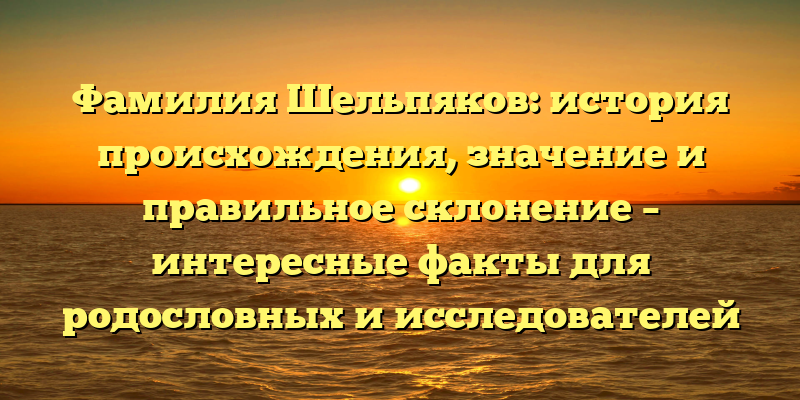 - Фамилия Шельпяков: история и значение, интересные факты для родословных и исследователей