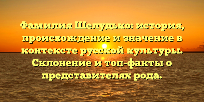 - Фамилия Шелудько: происхождение и история в контексте русской культуры. Узнайте склонение и топ-факты о представителях рода!