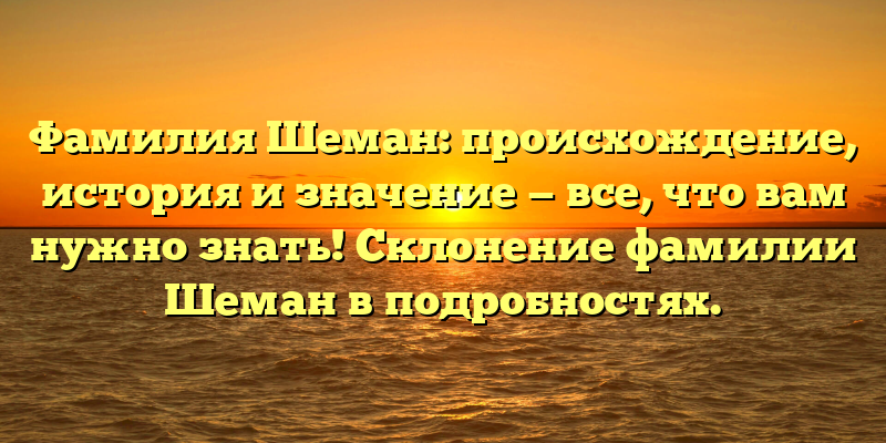 В этой статье мы также рассмотрим склонение фамилии Шеман в родительном, дательном, винительном и т.д. падежах, чтобы вы могли использовать ее правильно в своих документах и разговорах.