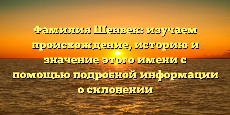 - Изучаем происхождение и значение фамилии Шенбек: подробное руководство по его склонению