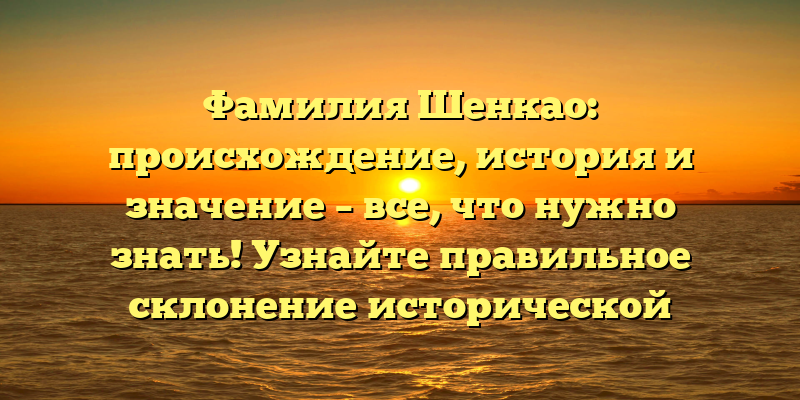 - Фамилия Шенкао: происхождение, история и значение — узнайте все и правильное склонение в нашей новой статье!