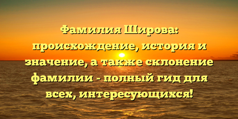 - Фамилия Широва: происхождение, склонение и значение — узнайте все, что вам нужно знать в нашем полном гиде!