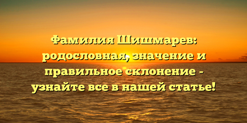 Полная родословная и правильное склонение фамилии Шишмарев: узнайте все в нашей статье!