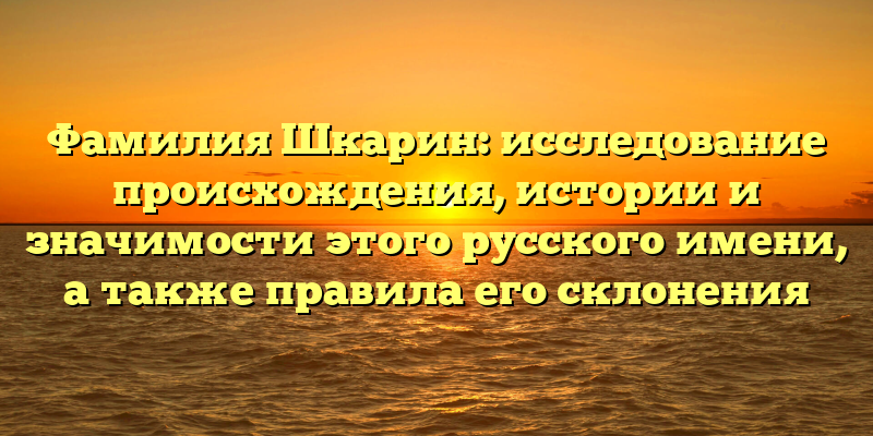 - История и происхождение фамилии Шкарин: интересные факты, правила склонения и значение для русской культуры