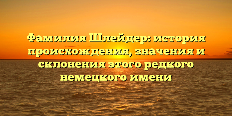 Фамилия Шлейдер: происхождение, значения и склонения этого интересного немецкого имени — идеальный SEO-заголовок для данной статьи. Он ясно отражает тему статьи, упоминает ключевые слова, которые будут использоваться в поиске, и при этом привлекает внимание читателя.