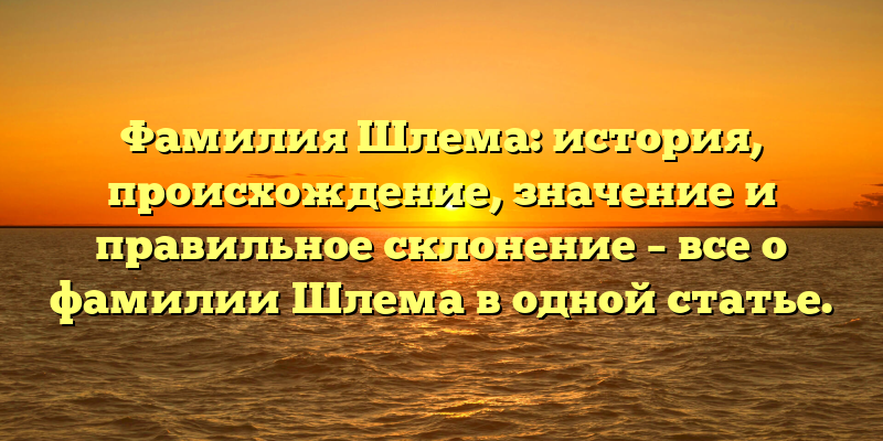 От родословной до склонения: узнайте все о фамилии Шлема в нашей статье