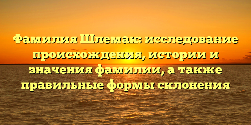 - Исследование фамилии Шлемак: происхождение, история и значения, а также правильные формы склонения в одной статье
