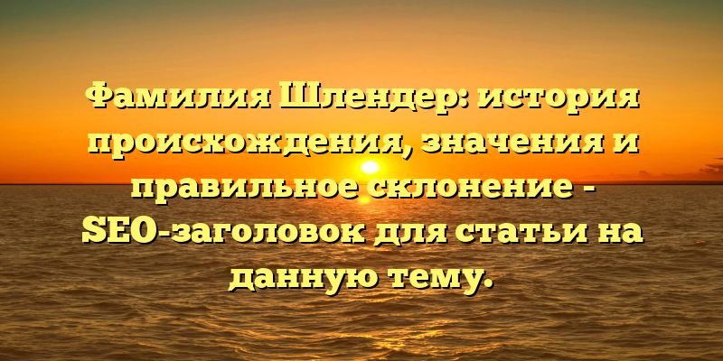 Фамилия Шлендер: происхождение, значения и правильное склонение в одной статье — SEO-заголовок для статьи на данную тему.
