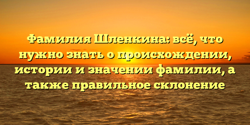 Раскрываем тайны происхождения фамилии Шленкина: история, значение и правильное склонение — SEO-заголовок для статьи.