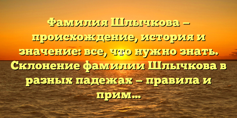 - Фамилия Шлычкова: происхождение и значение, правила склонения в разных падежах — полное руководство для изучения истории вашей фамилии.