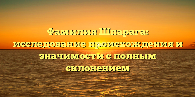 В данной статье мы рассмотрим происхождение фамилии Шпарага, ее историческую и культурную значимость, а также представим полное склонение фамилии согласно правилам русского языка.