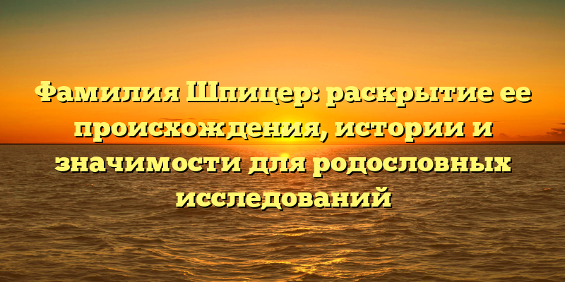 - Откройте тайны происхождения и истории фамилии Шпицер для успешных родословных исследований