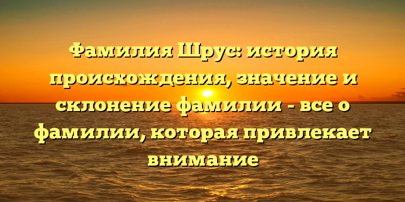 - Фамилия Шрус: происхождение, значение и склонение — история, которая заставит обратить внимание