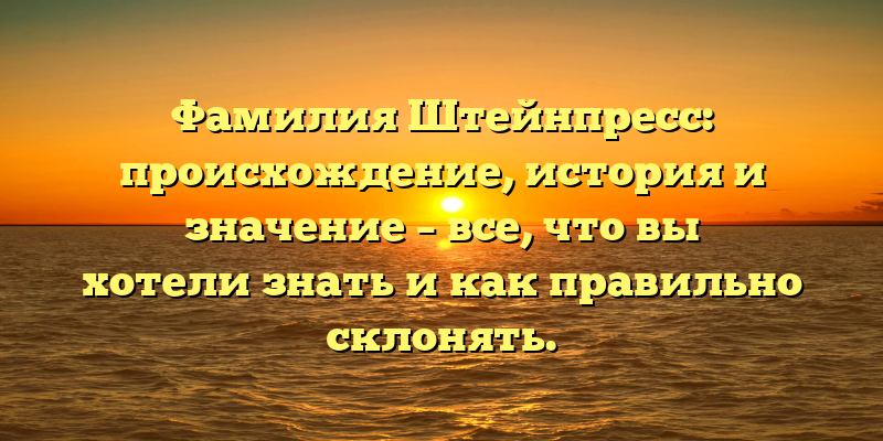 История и значение фамилии Штейнпресс: узнайте происхождение и правильное склонение