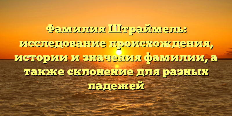- Фамилия Штраймель: разбираем происхождение, историю и значения, и даем советы по склонению в разных падежах.
