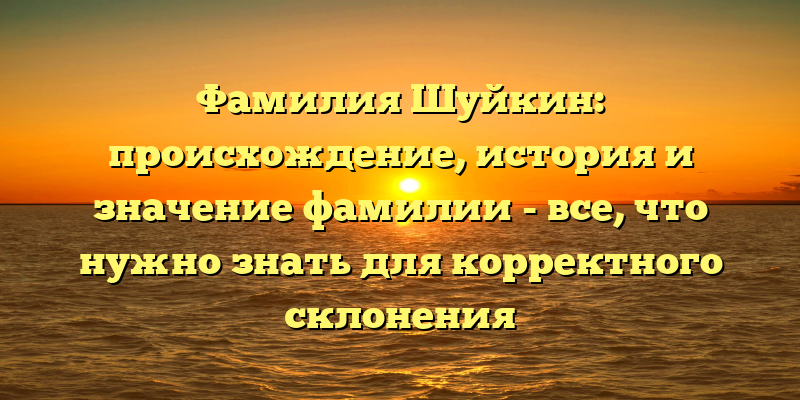 - Изучаем фамилию Шуйкин: происхождение, история и правильное склонение — полный гид для лингвистов и генеалогов