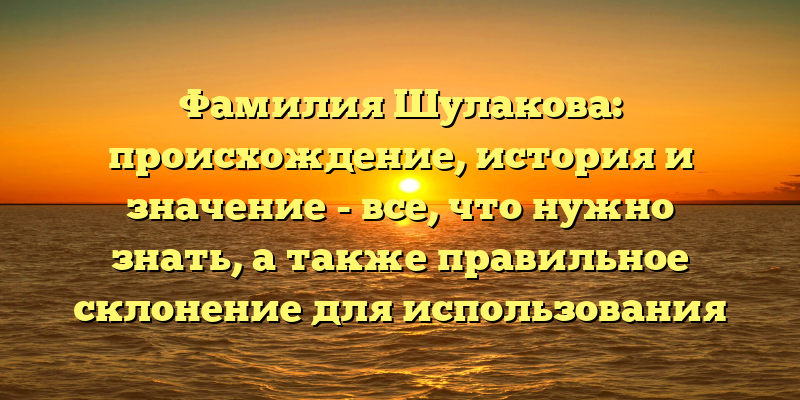 - Фамилия Шулакова: история происхождения и значение, правильное склонение для использования и интересные факты.