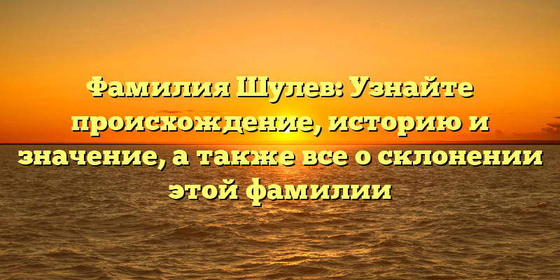 - Фамилия Шулев: история происхождения, значение и склонение через поколения