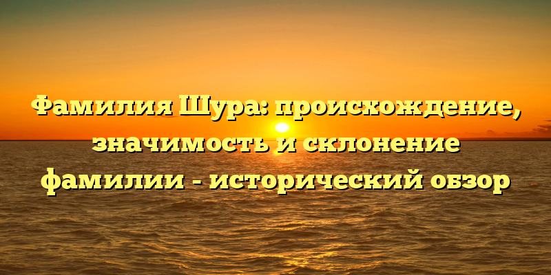 - Изучаем происхождение, значимость и склонение фамилии Шура: исторический обзор и экспертный анализ