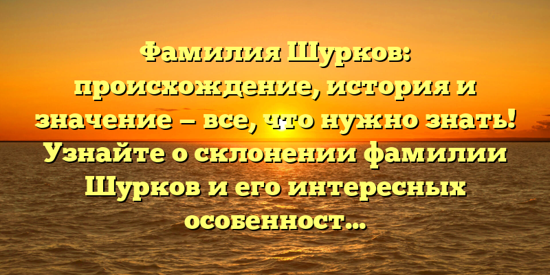 - Фамилия Шурков: происхождение, история и значение — полный гид для любопытных! Откройте мир склонения фамилии и удивительные особенности этого имени.