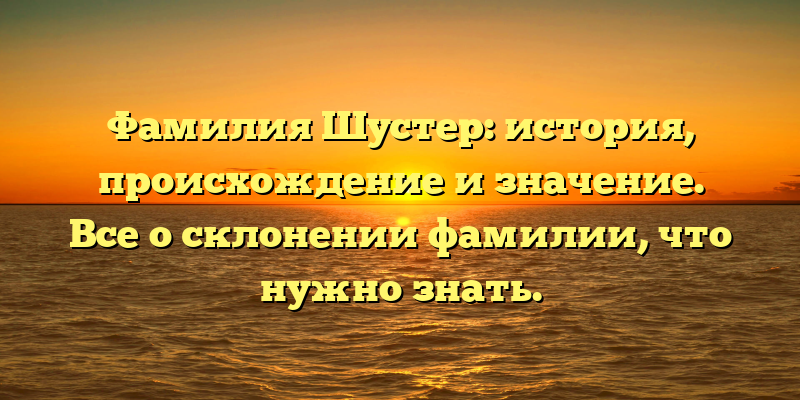 - Раскрываем тайны фамилии Шустер: история, происхождение и правильное склонение – важная информация!
