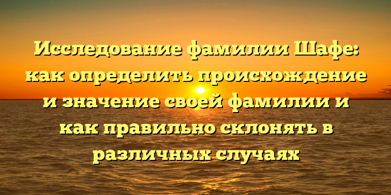 Исследование происхождения и значения фамилии Шафе: правильный способ склонения в различных ситуациях