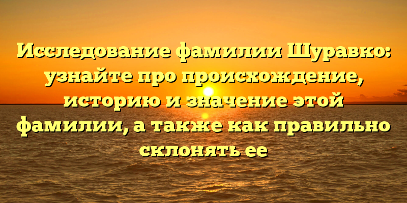 Изучение фамилии Шуравко: происхождение, история и значение, а также правильные способы склонения