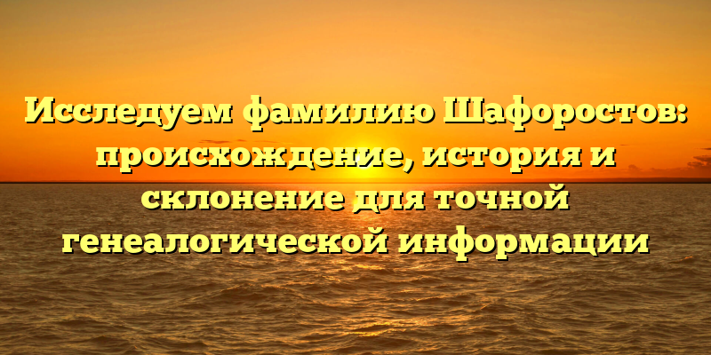 Фамилия Шафоростов: история, происхождение и полезные советы для генеалогов.