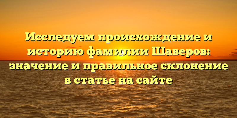 - Изучаем историю и происхождение фамилии Шаверов: правильное склонение и значение в статье на сайте