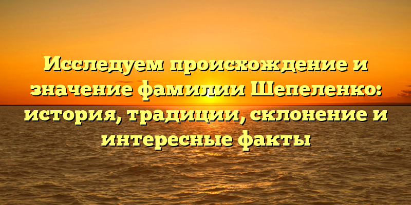 - Происхождение и значение фамилии Шепеленко: история, традиции и забавные факты, о которых вы не знали