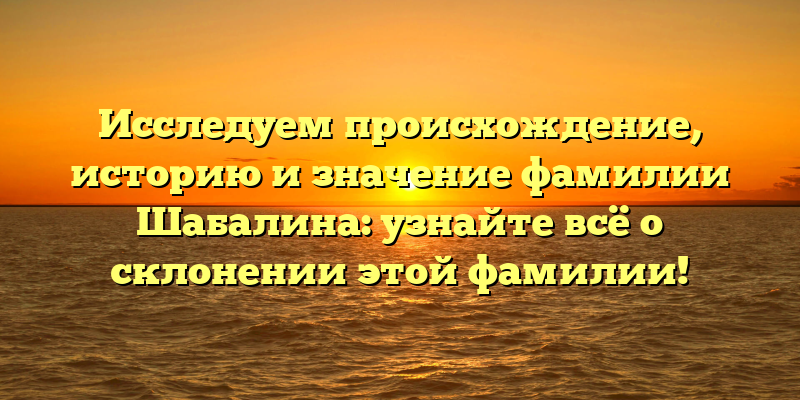 - Фамилия Шабалина: происхождение, история и значение. Полный гид по склонению для генеалогов и исследователей родословных